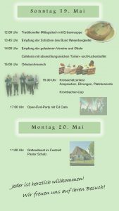 15:00 Uhr: Antreten der Schützen beim Feuerwehrgerätehaus am Lammerbach. Abholung des amtierenden Königs.